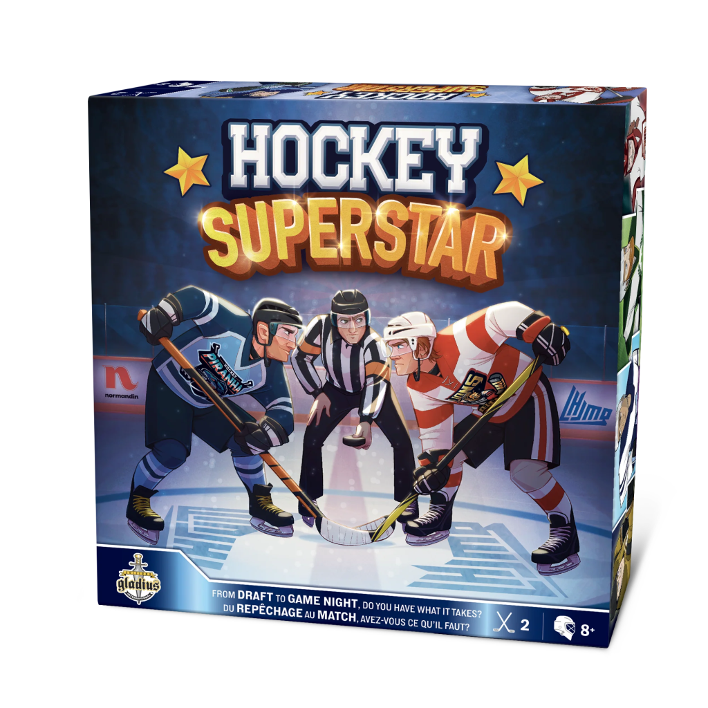 Jean-François Baril rêvait depuis longtemps d’un jeu de société où l’on incarnerait un entraîneur durant un match. Prendre des décisions sur l’alignement, quels joueurs envoyer sur la glace aux moments cruciaux. C’est donc après quelques années de peaufinage qu’Hockey Superstars naît! Vivez une expérience de directeur général en repêchant vos cartes de joueurs et confrontez votre alignement avec celui de votre adversaire sur la patinoire ensuite. C’est ce que propose Hockey Superstars pour des parties de 2 joueurs d’environ 30 minutes.