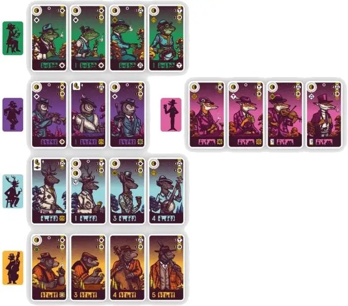 La thématique est omniprésente: la Prohibition n’est pas un simple décor, elle est au cœur même de la mécanique du jeu. Les ressources représentées par les icônes sur les dés sont toutes des ressources interdites prisées par tes clients. Alcool bien sûr, mais aussi musique, argent ou influence sont des ressources inestimables. Cette mise en scène immersive donne réellement l’impression de gérer un speakeasy dans l’ombre, où chaque cocktail servi ou chaque groupe de jazz attiré compte pour devenir l’adresse la plus en vue de la forêt clandestine.