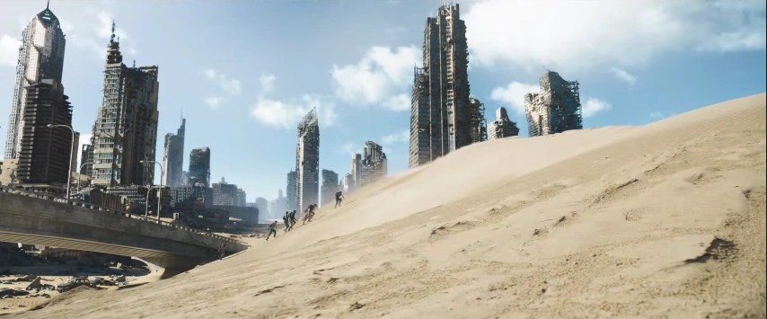 Le plus grand bouleversement de La Terre brûlée réside dans son changement d’ambiance. Le film abandonne presque entièrement l’aspect énigmatique et labyrinthique du premier opus pour adopter une structure plus proche du film post-apocalyptique. L’action est plus fréquente, les menaces plus visibles et la violence plus frontale.