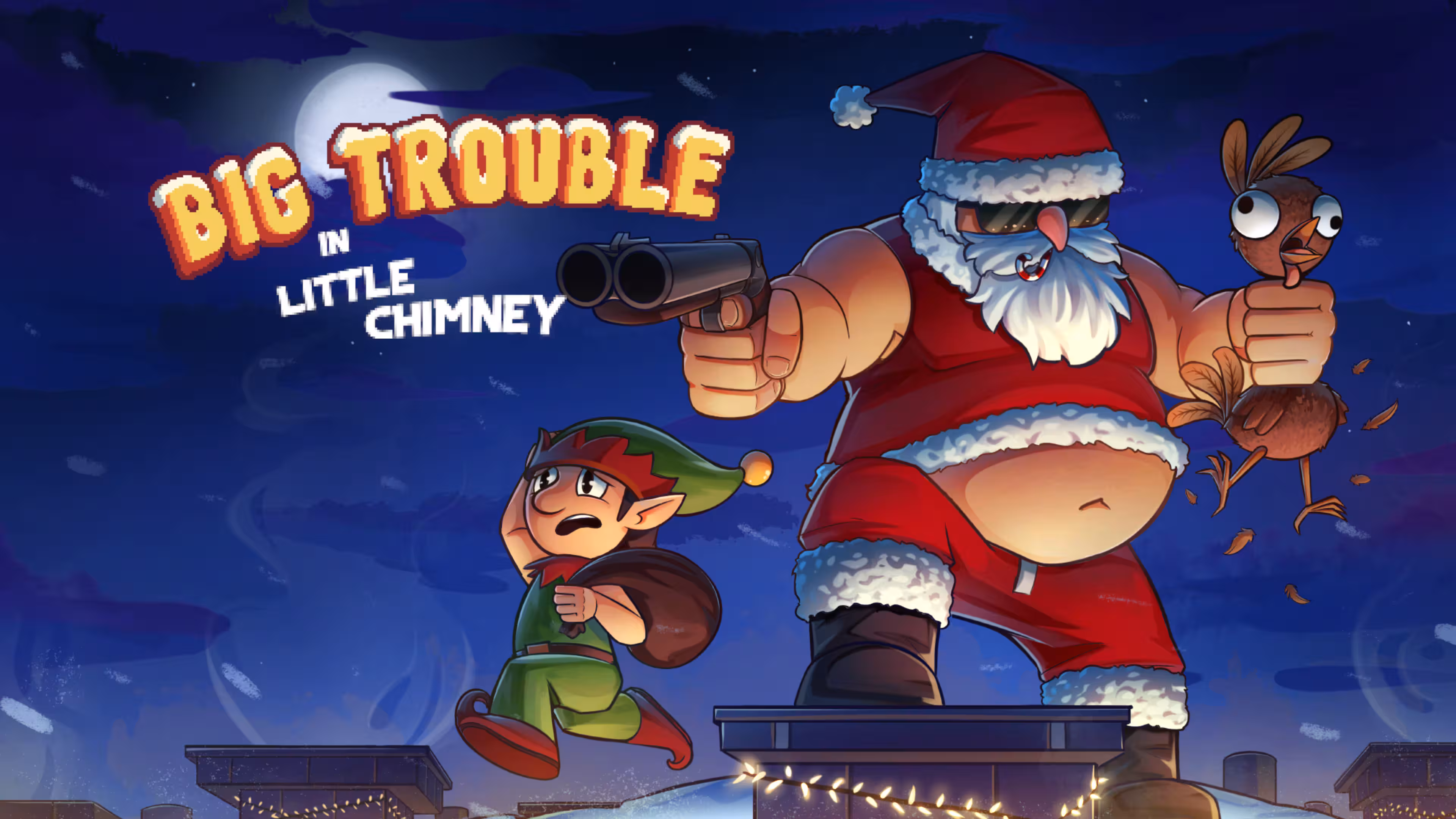 Développé par FobTi Interactive et publié par Ratalaika Games S.L., Big Trouble In Little Chimney est un jeu de tir et de survie où l’on affronte des vagues d’ennemis qui débarquent sans arrêt, entre guirlandes, clochettes et créatures pas vraiment festives. Krampus est de la partie, prêt à gâcher Noël, et le joueur se retrouve rapidement avec un chocolat chaud d’un côté et un shotgun de l’autre. Disponible sur PC depuis novembre 2024, le jeu se dévoile au grand public le 19 décembre 2025 sur Nintendo Switch, Xbox et PlayStation.