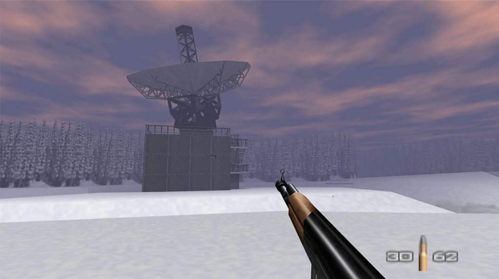 L’histoire de GoldenEye 007 suit de très près celle du film, et cette adaptation fonctionne encore étonnamment bien. À l’époque, Rare avait réussi un exploit : proposer le meilleur jeu vidéo basé sur un film que les joueurs aient eu entre les mains. Certes, le récit a vieilli, mais il n’est aucunement mauvais. Il traverse le temps avec une certaine élégance, notamment grâce à sa structure claire et à ses objectifs bien définis. Même aujourd’hui, l’enchaînement des missions reste cohérent et engageant. On sent que le jeu a été pensé pour raconter une histoire interactive, et non simplement pour empiler des niveaux sans contexte.