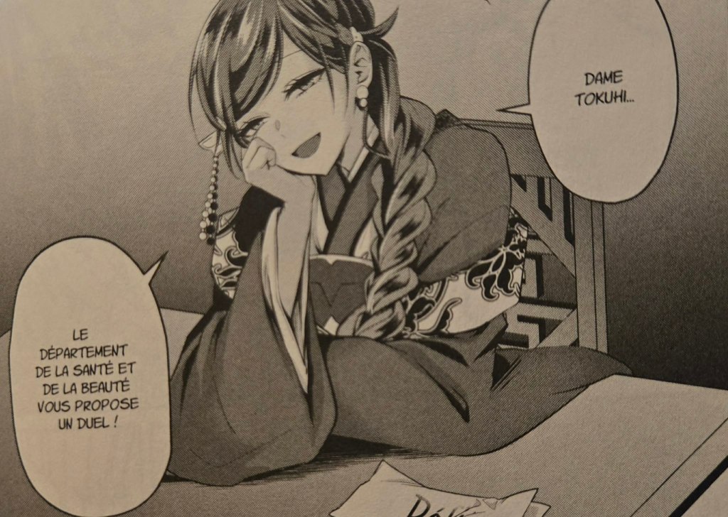 Pour rappel, le tome précédent nous laissait en plein préparatifs de la sélection des fonctionnaires de la cour intérieure. Toutefois, le différend opposant Yuran à dame Tokuhi complique sérieusement la situation, ralentissant l’avancée des préparatifs. Afin de régler ce conflit, un concours en trois épreuves est instauré, se concluant par une dégustation de thé. Le perdant devra alors s’excuser et se plier aux exigences du gagnant. Yuran saura-t-elle relever chacun des défis ou devra-t-elle obéir à dame Tokuhi, qui semble nourrir à son égard une animosité toujours aussi tenace…?