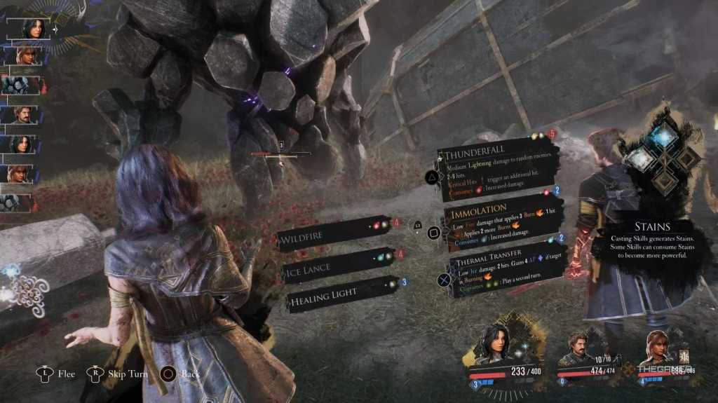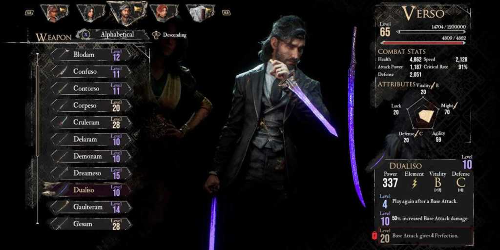 Mauvaise nouvelle : le Dualliste n’a qu’une seule véritable faiblesse, la magie de Lumière. Bonne nouvelle : vous venez justement de recruter Verso, un personnage spécialisé dans ce type d’attaques. Il est donc indispensable dans votre équipe. Retirez ses compétences de zone comme Radiant Slash pour privilégier un sort lumineux ciblant un seul ennemi.