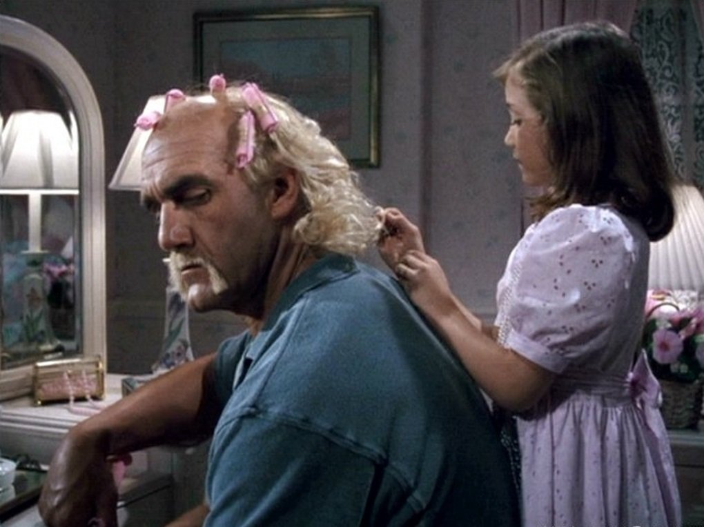 Monsieur Nounou est un typique film dans lequel on prend un grand gaillard et on le place dans une situation complètement opposée à ce qu’il représente. Un flic à la maternelle avec Arnold Schwarzenegger, La fée des dents avec Dwayne Johnson ou encore Le pacificateur avec Vin Diesel sont tous de bons exemples. Le problème, c’est que pour que ce genre de film fonctionne, l’acteur principal doit avoir un certain charisme. The Rock en a à revendre, Schwarzenegger s’en sort pas trop mal non plus, je suis moins certain pour Diesel, mais une chose est sûre: Hulk Hogan n’en a aucun. Non seulement son jeu d’acteur est nul, mais le type ne dégage absolument rien.