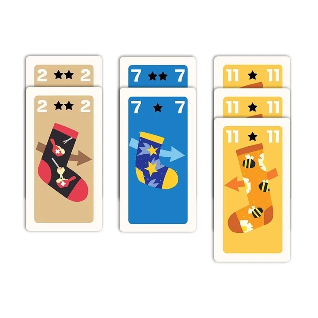 Oh my Socks! est composé de 66 cartes qui représentent des chaussettes ayant des valeurs de 2 à 11. Vous trouverez deux exemplaires de 2, trois de 3, quatre de 4 etc..