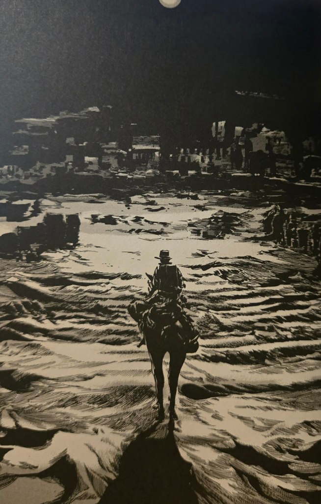 Dans cette dernière nouvelle, Lovecraft nous entraîne aux côtés d’un explorateur solitaire qui, au cœur du désert, aperçoit les vestiges de la mythique Cité sans nom. Poussé par une curiosité irrépressible, il décide d’y pénétrer, pleinement conscient des risques qu’il encourt. Très rapidement, ce qui devait être une simple exploration se transforme en une descente vertigineuse vers l’inconnu. Les découvertes qu’il y fait sont à la fois profondément troublantes et étrangement fascinantes, comme si chaque révélation venait fissurer un peu plus sa perception du réel.