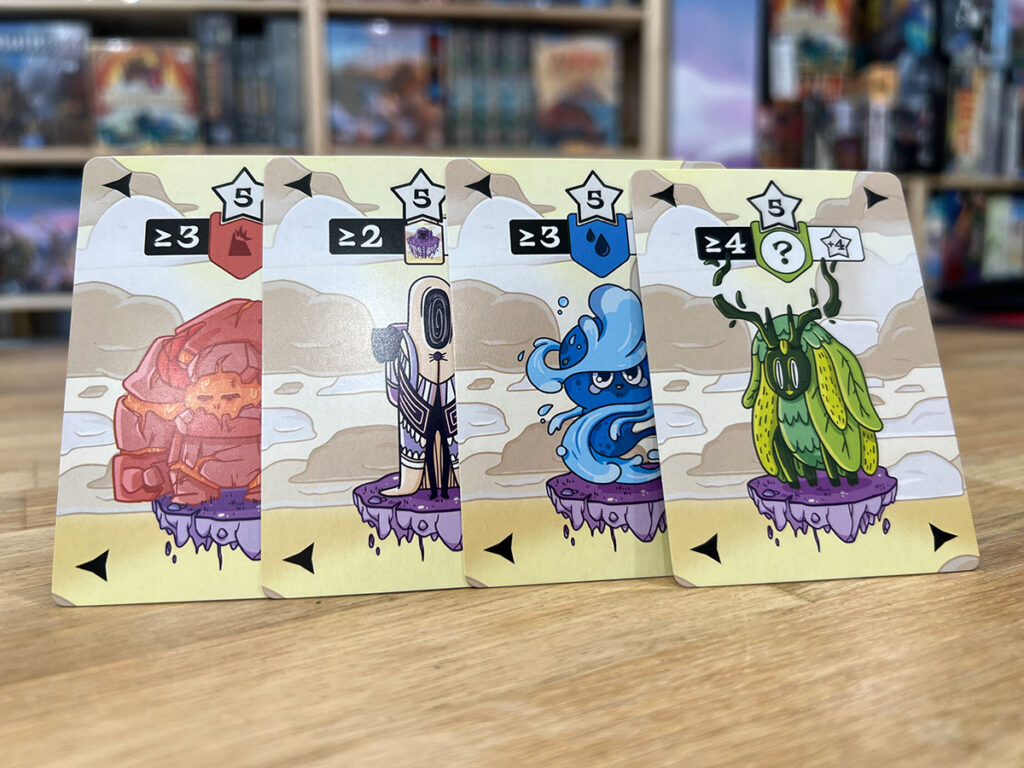 Le but de Strange World est de créer un monde — une grille de cartes 4×4 — qui rapportera le plus de points après 5 manches. Chaque type de carte Terre produit des étoiles (points de victoire) de manière unique.