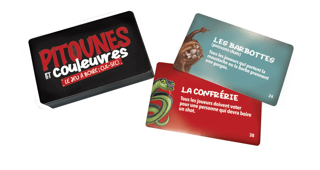 Pitounes et couleuvres offre la possibilité de faire des soirées mémorables, je n’en doute pas une seule seconde. Je tâcherais de planifier ma partie avec le type de soirée et envoyer une idée des cartes aux gens qui désirent y participer avant de me lancer. Cela dit, rien ne vous empêche de laisser des cartes de côté ou de faire comme bon vous semble avec celles que vous piger. Je ne vous cacherai pas que j’ai retiré quelques cartes lors de ma partie pour éviter des dégâts, à 38 ans… je choisis mes combats!