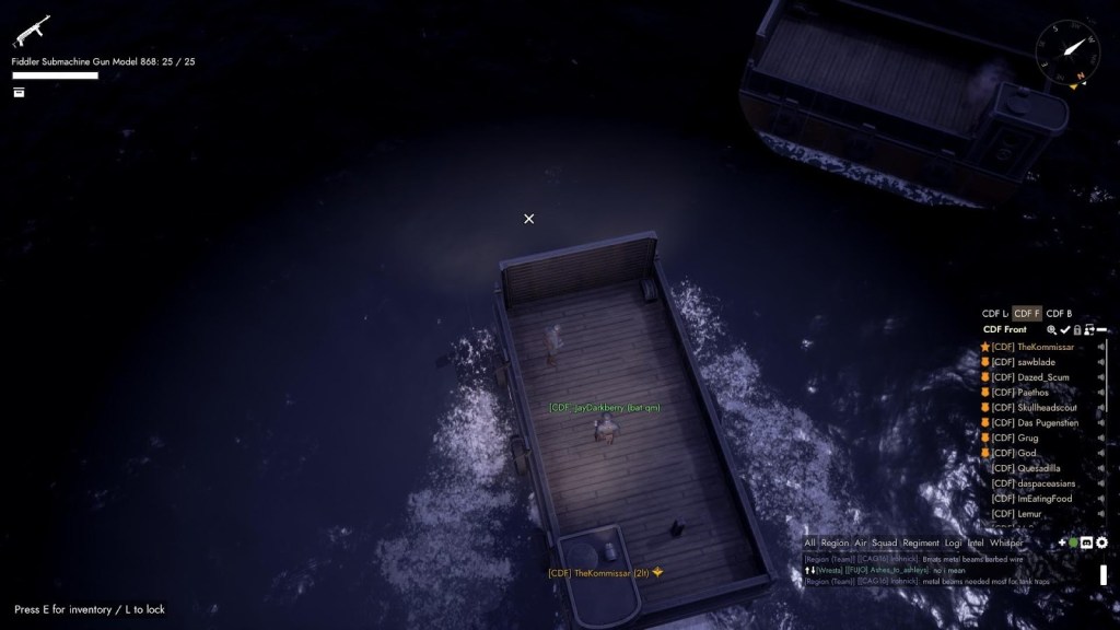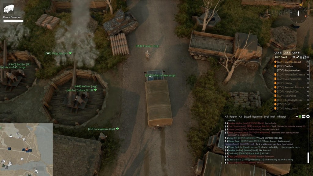 L’autre défaut, si on peut le dire ainsi, c’est le fait que certains éléments de Foxhole sont faits pour être joués en groupe, comme opérer des navires de guerre ou des infrastructures industrielles. D’autres items, comme les chars d’assauts plus lourds ou les bombardiers demandent un investissement de temps si grand qu’il faut être en groupe pour y accéder. Un joueur solo ne pourra pas espérer avoir accès à ces éléments tout seul dans des temps de jeu normaux et cela peut brûler des joueurs solos qui vont tenter à tout prix d’avoir accès à ces éléments. Heureusement, la communauté de Foxhole est très accueillante, avec de nombreux régiments toujours ouverts à accepter de nouveaux membres et de les former avant de les laisser jouer avec les plus gros jouets du jeu.