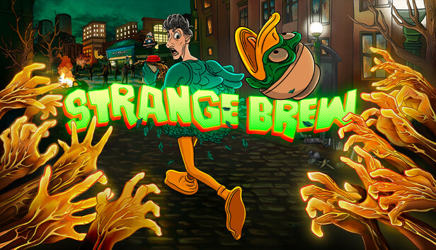 Vous incarnez une mascotte déguisée en canard, complètement accro à la caféine. Dès les premières minutes, le ton est donné. Une invasion de zombies éclate et votre seul objectif est de survivre… ou plutôt de fuir. À travers une série de niveaux remplis d’obstacles et de dangers, vous devrez trouver votre chemin sans jamais vous arrêter. Car dans Strange Brew, s’arrêter, c’est mourir.