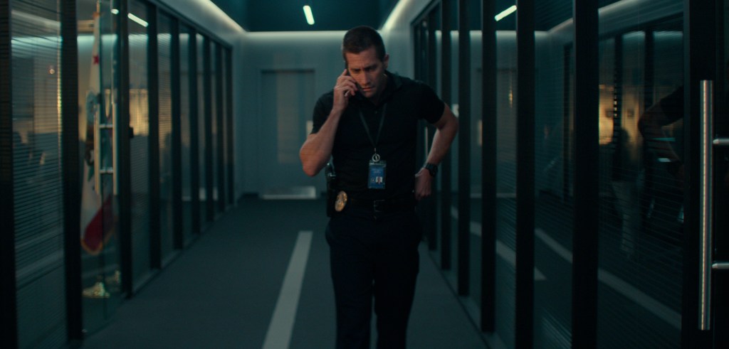 Dans The Guilty, la caméra demeure presque constamment fixée sur le visage de Jake Gyllenhaal. Gros plans intenses, respiration lourde, colère contenue : la performance devient le moteur principal du récit.